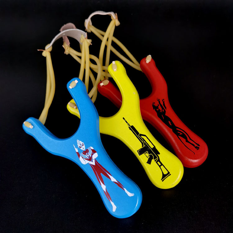 卸売りの多元的な露店のパチンコの迷彩の赤い木のパチンコは丸い皮を縛らないで合成します。