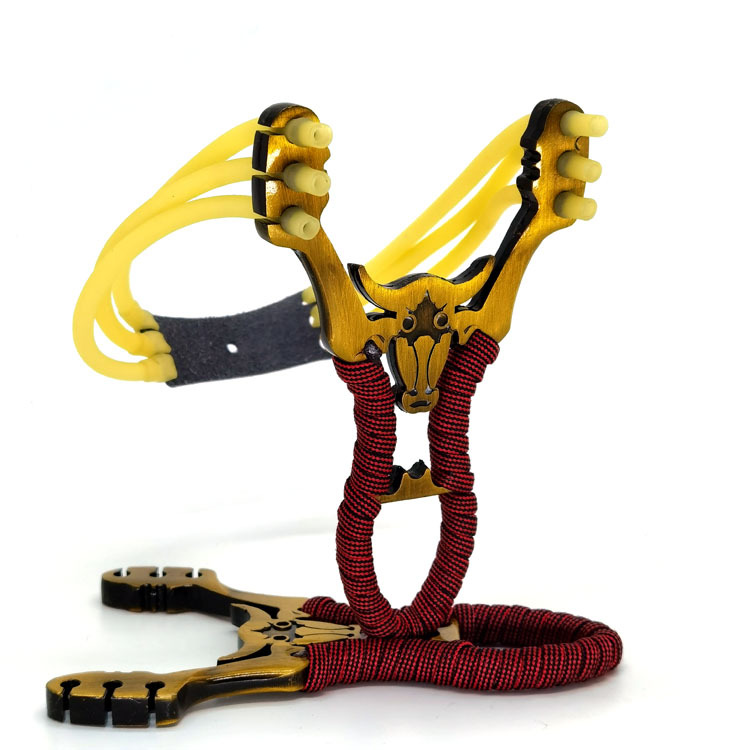 伝統的な皮筋位置決めカモシカステンレス扁皮筋パチンコ精巻金属小反曲パチンコ