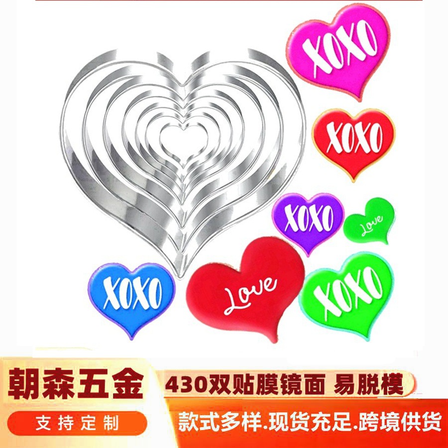 バレンタインデー 7 ピースハート型ステンレス鋼クッキー型ベーキングケーキ型 DIY ツールフルーツカッター