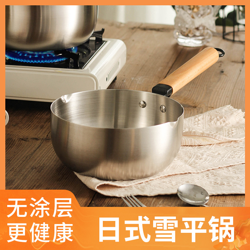 ステンレスの雪平鍋の日本式の木の柄の乳鍋はコーティングしていません。