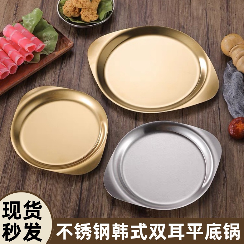 韓国式ステンレスの金色の両耳のトレーの丸い皿の軽食の皿の焼肉の皿のデザートのトレーの海鮮のトレー