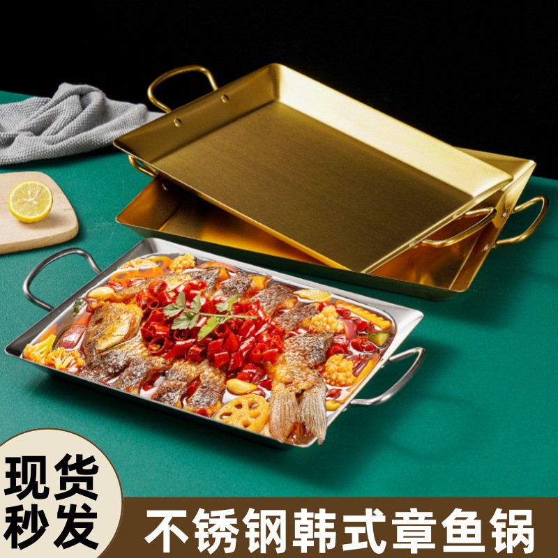 韓国式ステンレス海鮮鍋金色正方形ロブスター皿アルコール乾燥鍋皿タコ鍋四角牛腸鍋