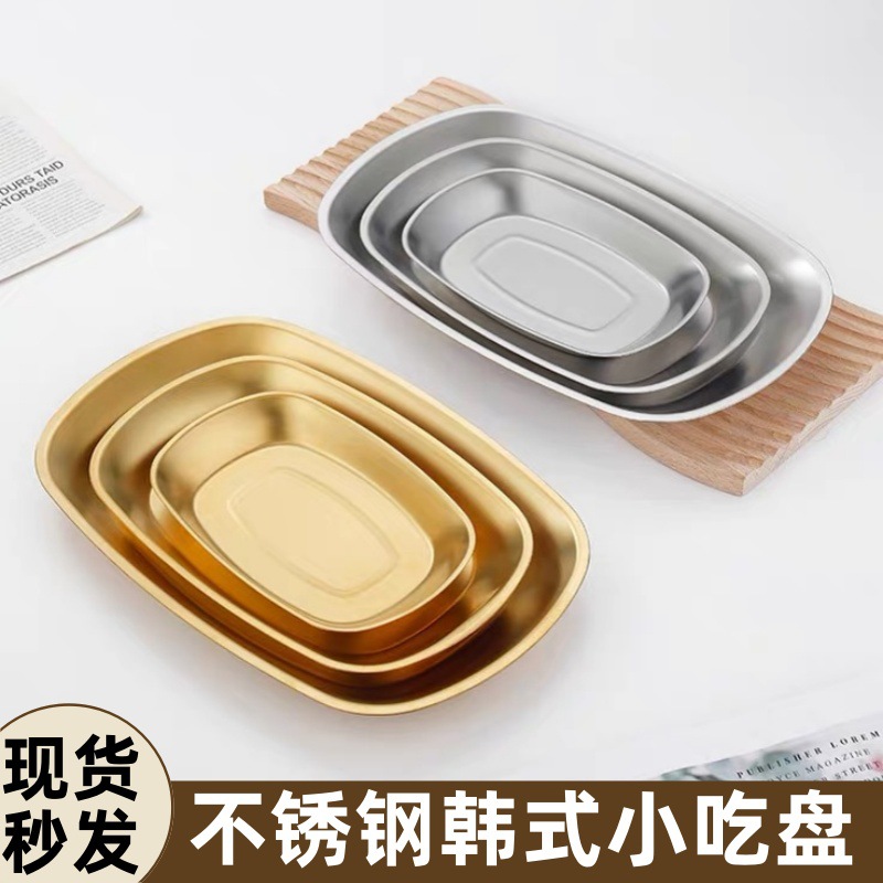 韓国式304ステンレス角型軽食蝶商用金色キムチ皿凉菜皿吐骨皿デザート皿