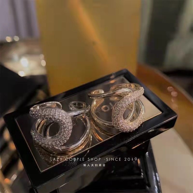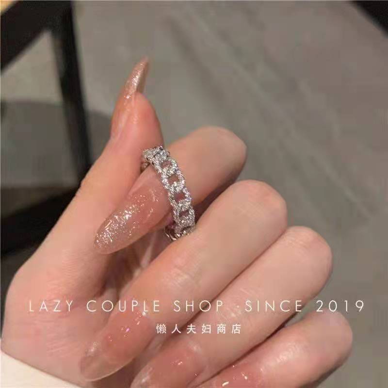 軽豪華超フラッシュジルコン指輪ins冷淡風小衆デザイン麻花チェーン高級感開口リング女潮