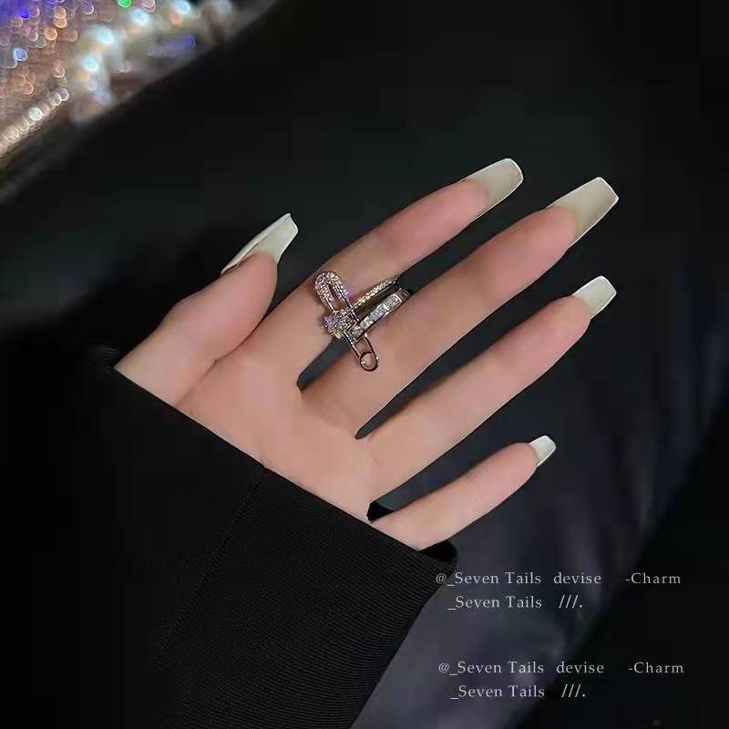 大衆設計軽豪華ジルコン開口指輪女性冷淡風ファッションチェーン個性食指戒ins潮高級