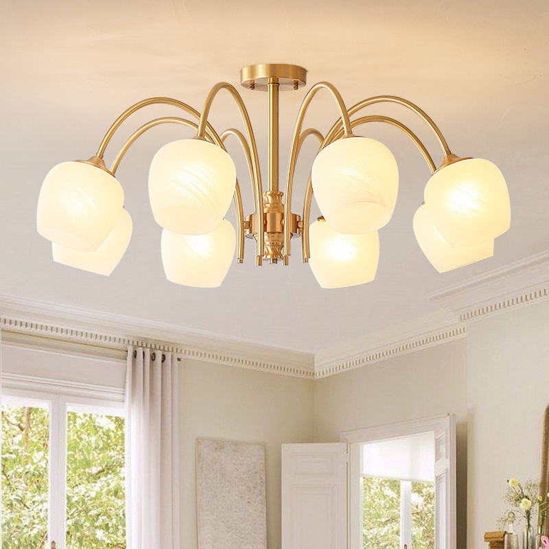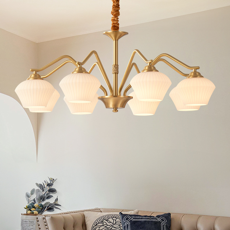 アメリカンライト高級リビングルームシャンデリアクリームスタイルフレンチベッドルームメインライトレストランヨーロピアンスタイルレトロハイエンド全銅階段ライト