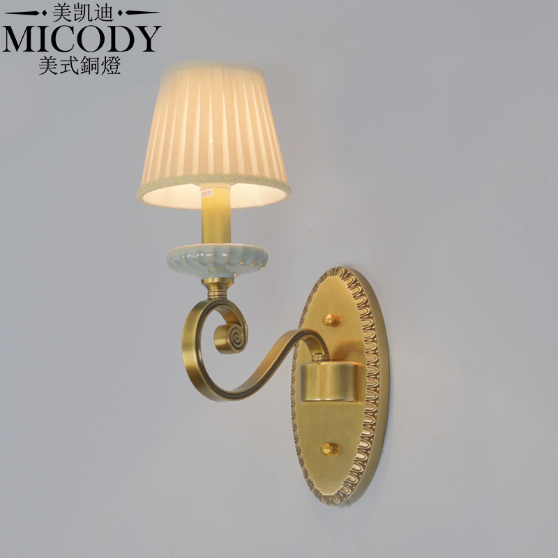 アメリカンオール銅セラミックシングルおよびダブルヘッドウォールランプリビングルーム背景壁寝室ベッドサイドヨーロッパモダンシンプルな純銅ランプ