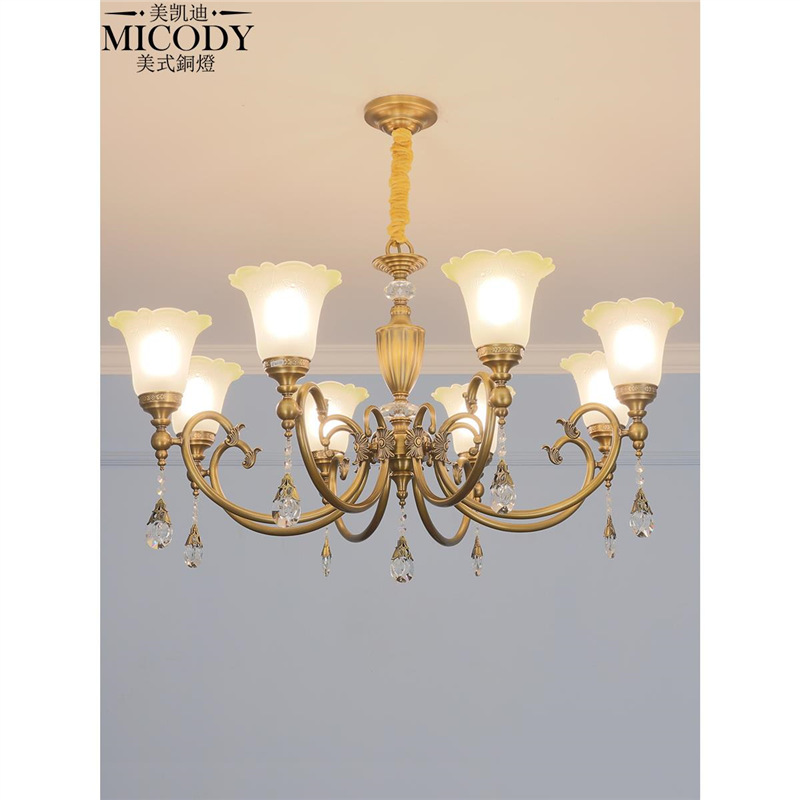 アメリカンシャンデリア、リビングルームランプ、オール銅製ライト、高級レトロクリスタル、ヨーロピアンスタイルのベッドルームダイニングルームランプ、マスターベッドルーム階段、フレンチランプ