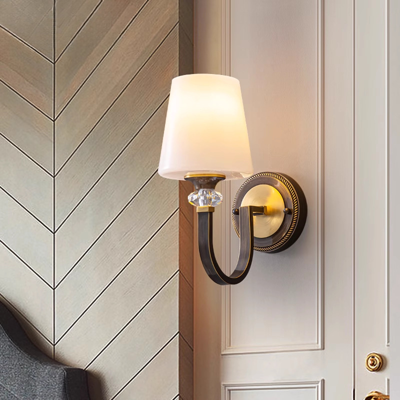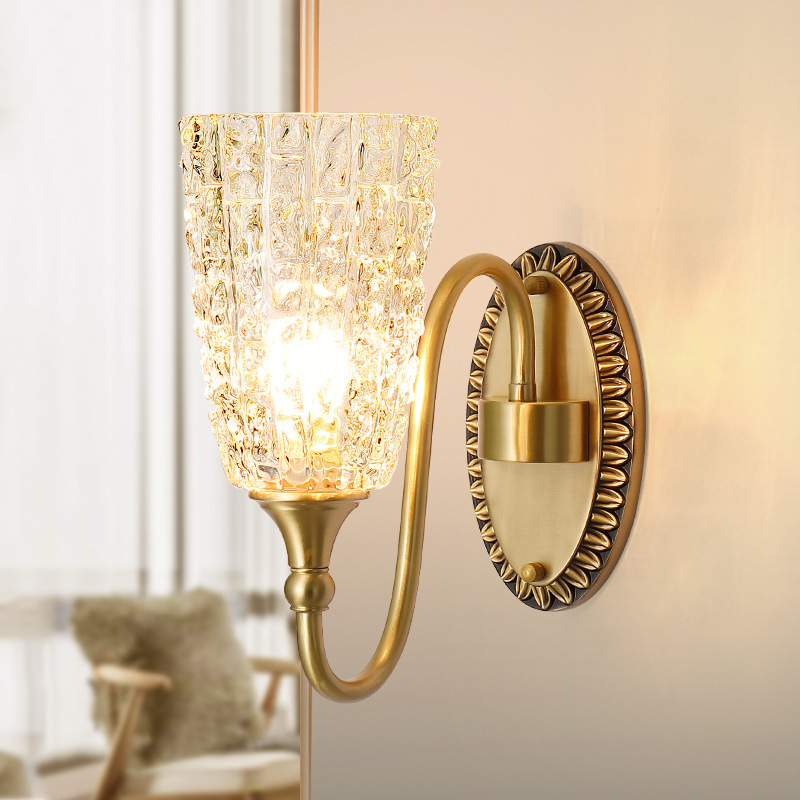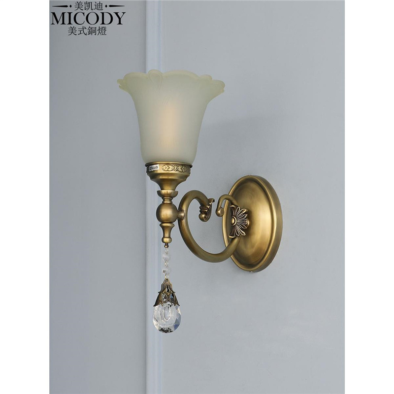 アメリカンオール銅ウォールランプシンプルモダンクリスタルライト高級リビングルーム背景壁ランプ通路寝室ベッドサイドランプM2201