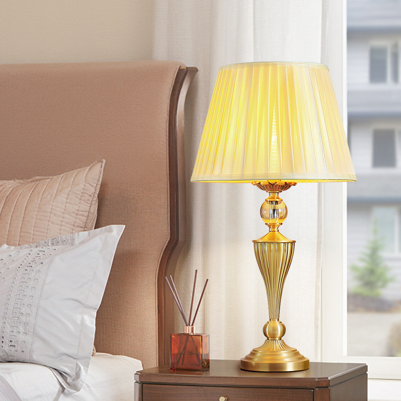 アメリカンテーブルランプ、ベッドサイドランプ、ベッドルームライト、高級マスターベッドルーム、オール銅、ヨーロピアンスタイル、ハイエンドリビングルーム、フレンチレトロ、ハイエンドの新しいスタイル