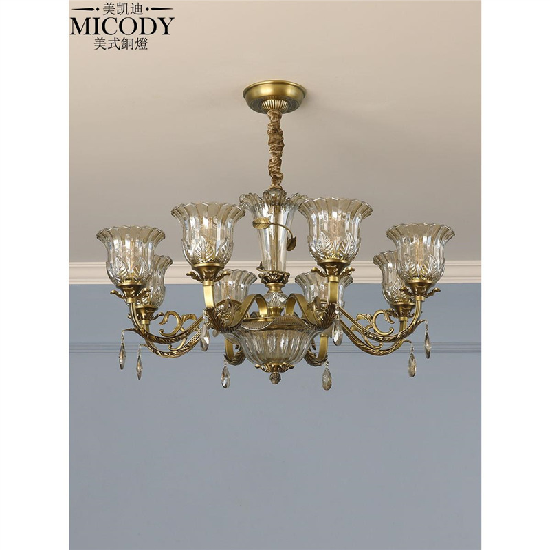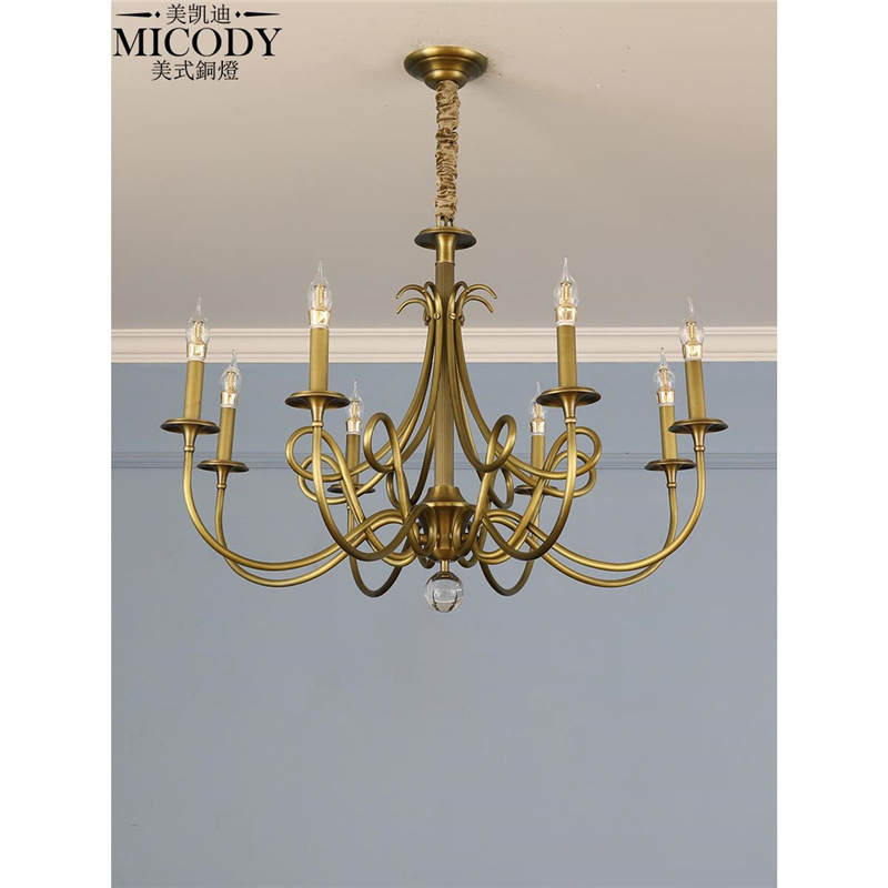 アメリカン銅シャンデリアリビングルームライトメインライトシンプルレトロライト高級レストランライト寝室ライト2025新モデル2817