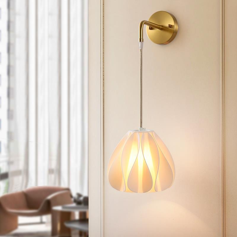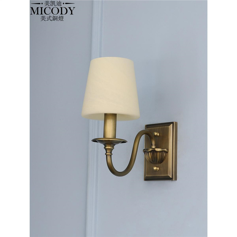 アメリカンリビングルーム背景壁ベッドサイド通路階段照明器具モダンシンプルシングルおよびダブルヘッドガラスランプシェード全銅壁ランプ