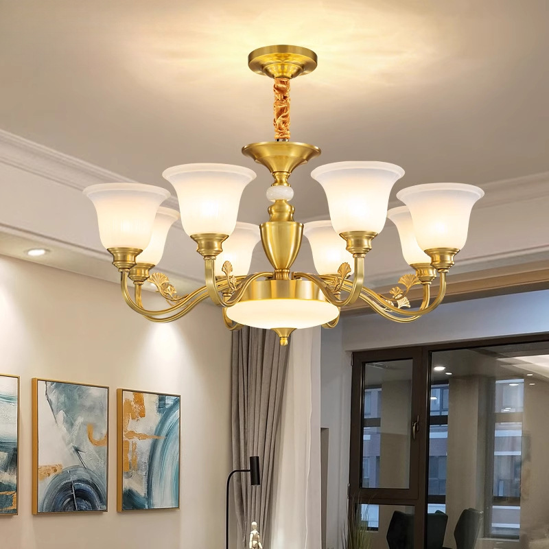 アメリカンシャンデリアリビングルームランプ全銅翡翠メインランプヨーロッパのシンプルなレトロなヴィラレストランランプ寝室ランプN226