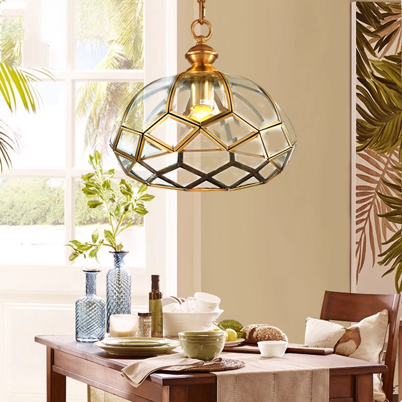 2024 新アメリカンリビングルームクリスタルガラス全銅シャンデリアヨーロッパスタイルヴィラレストラン寝室高級純銅ランプ