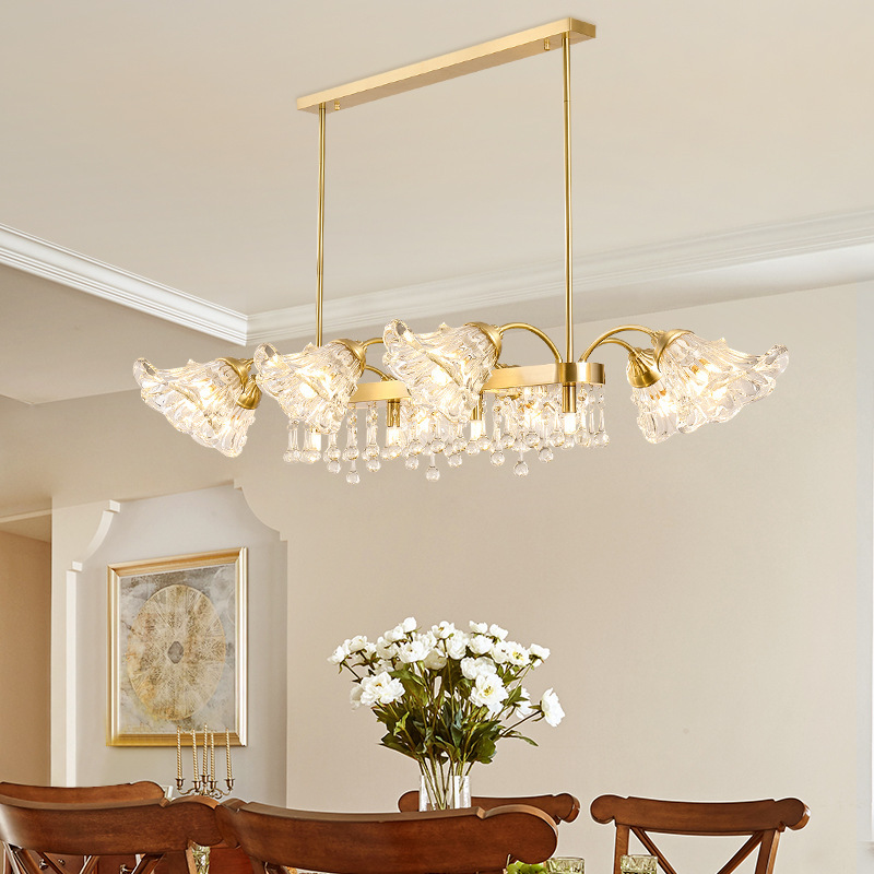 アメリカンレストランランプシャンデリアレトロフレンチロングダイニングテーブルランプリビングルームバーライト高級全銅ランプヨーロピアンスタイルダイニングシャンデリア