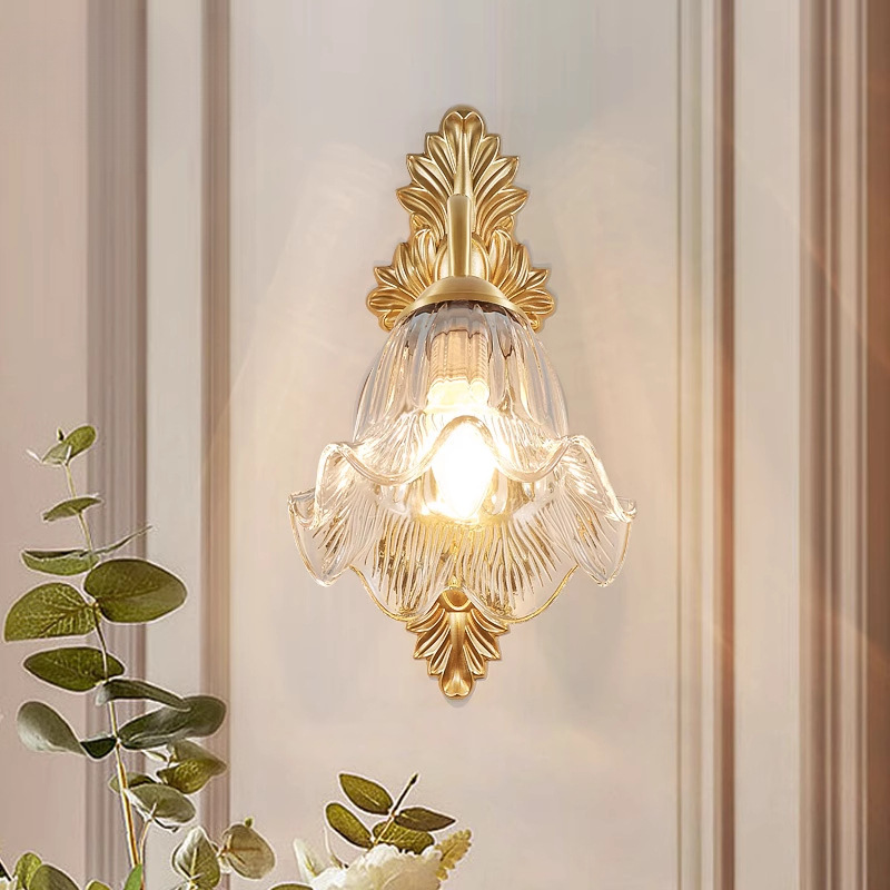 アメリカンレトロウォールランプベッドサイドランプ寝室リビングルームテレビ背景壁ヨーロッパフレンチ階段ハイエンド全銅ランプ