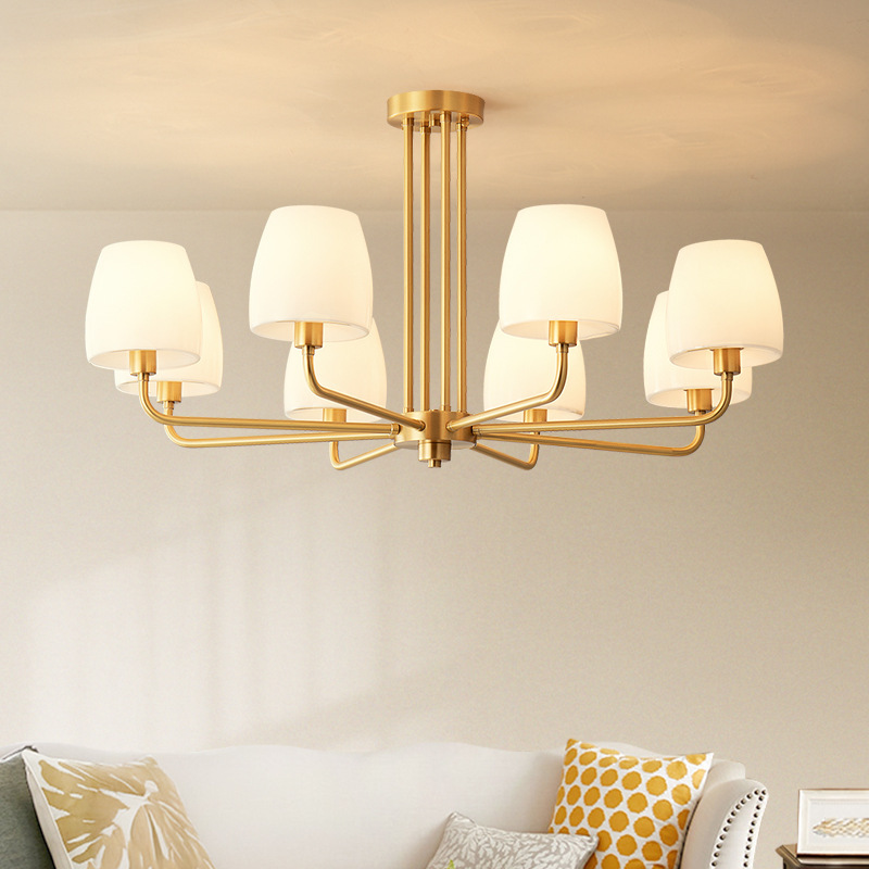 アメリカンシャンデリアリビングルームライトメインライト全銅シンプルモダンレトロ北欧レストラン書斎寝室ライトファブリックY001