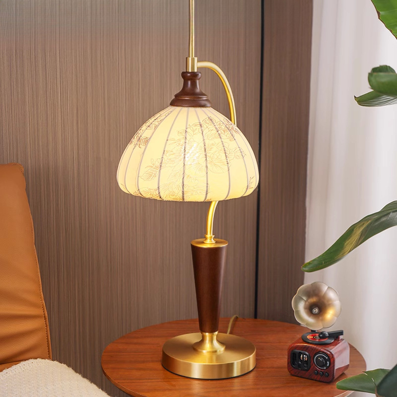 中世スタイルの全銅無垢材テーブルランプリビングルームランプクルミ色レトロ装飾寝室のベッドサイドランプ T251