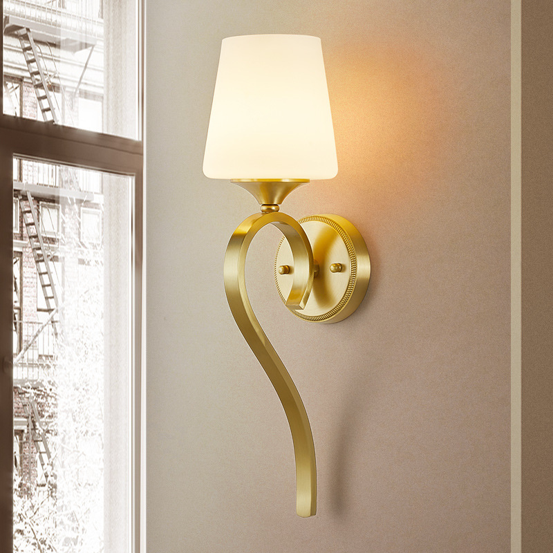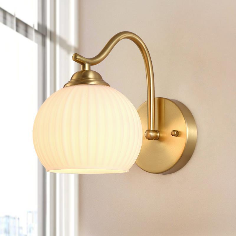 アメリカンウォールランプリビングルームベッドルームベッドサイドランプヨーロピアンスタイル全銅モダンフレンチライト高級レトロ階段ハイエンドウォールランプ