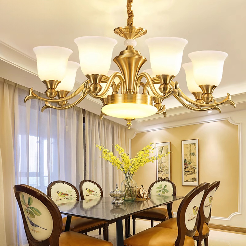 アメリカンレトロ全銅シャンデリアリビングルームライトメインライトLEDヨーロピアンスタイル書斎寝室ダイニングルームライト吸引と吊り下げの両用242