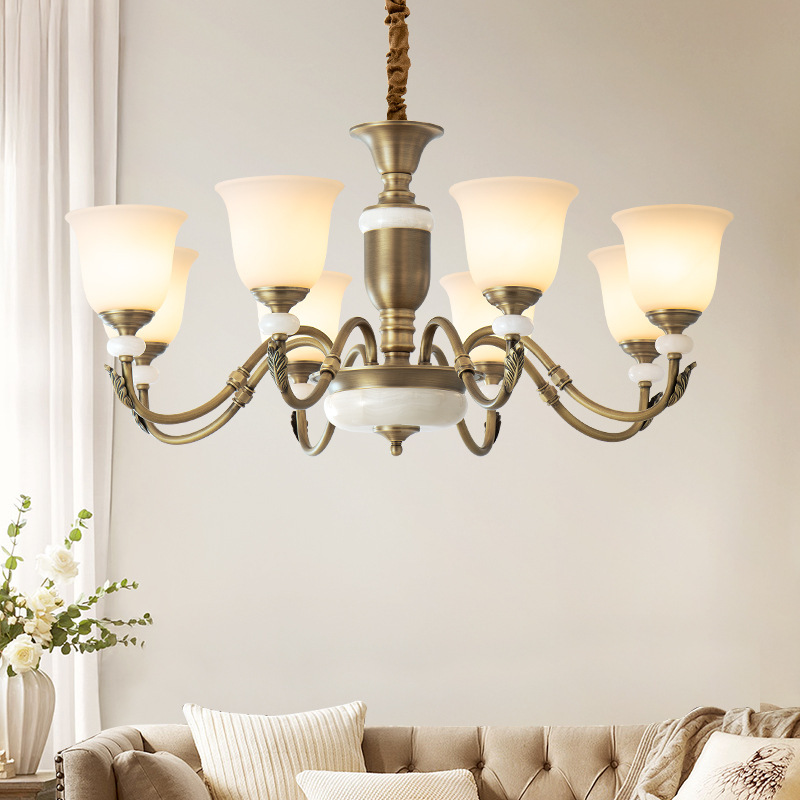 アメリカンシャンデリアリビングルームランプ全銅ランプヴィラ雰囲気ヨーロッパシンプルなレトロ翡翠ダイニングルーム寝室ランプ T 7201