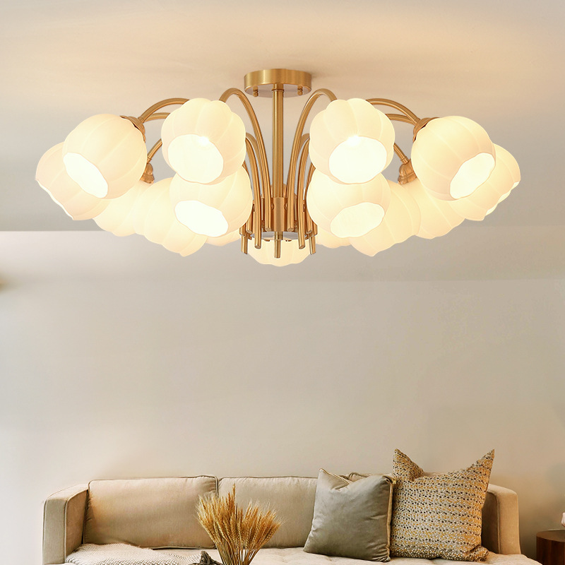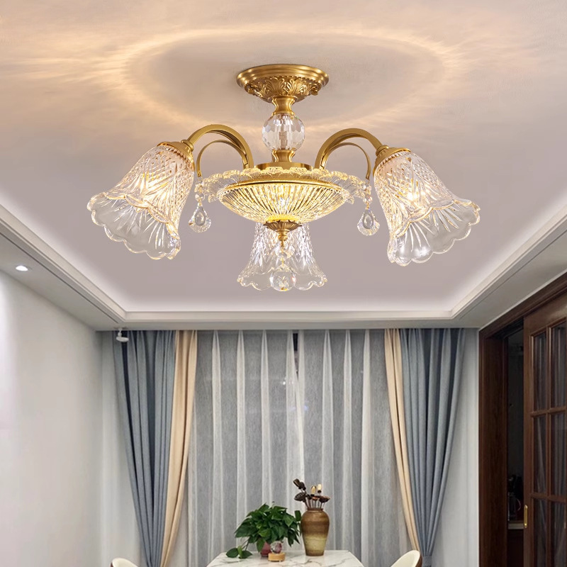 リビングルームのシーリングランプメインライトフレンチレトロ新しいライト高級モダンな寝室のシャンデリア全銅アメリカンクリームスタイルランプ