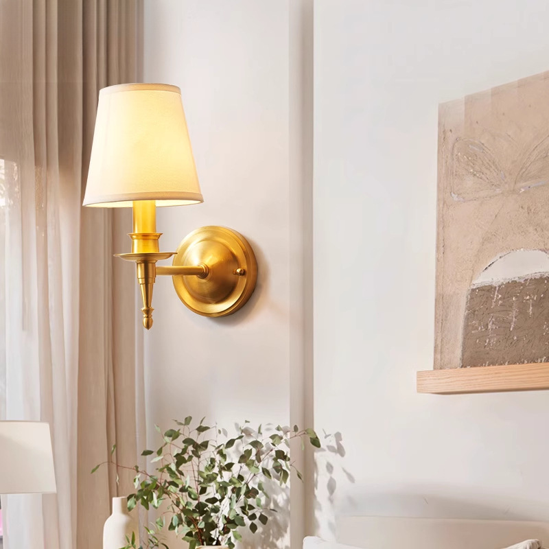 アメリカンスタイルの全銅製ウォールランプシンプルなレトロな生地暖かいリビングルームの背景壁廊下通路寝室のベッドサイドランプ7302