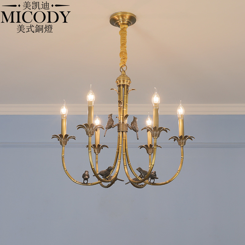 アメリカンカントリーレトロスタイルのリビングルームとレストランの純銅ランプデザイナーヴィラクリエイティブバード全銅シャンデリア