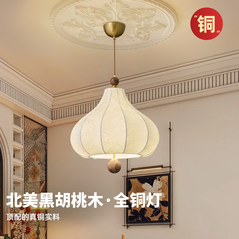 全銅アメリカンミッドセンチュリーフレンチレトロレストランシャンデリア目の保護生地プリント無垢材バーテーブル和風寝室シャンデリア