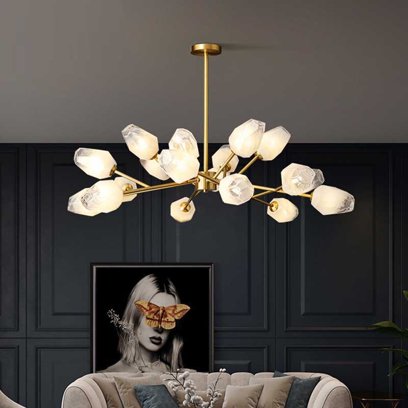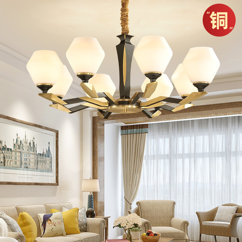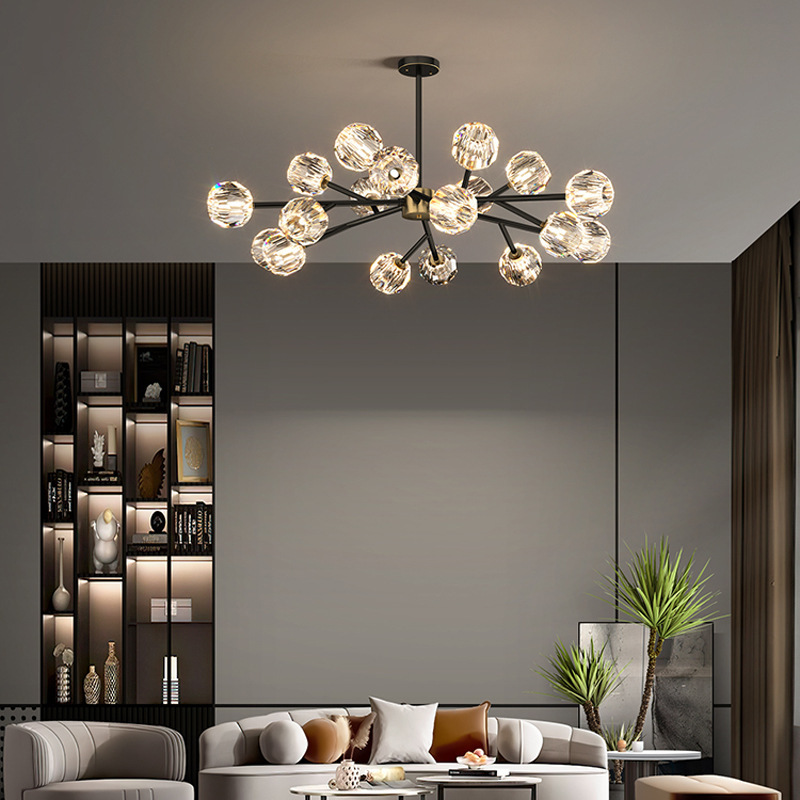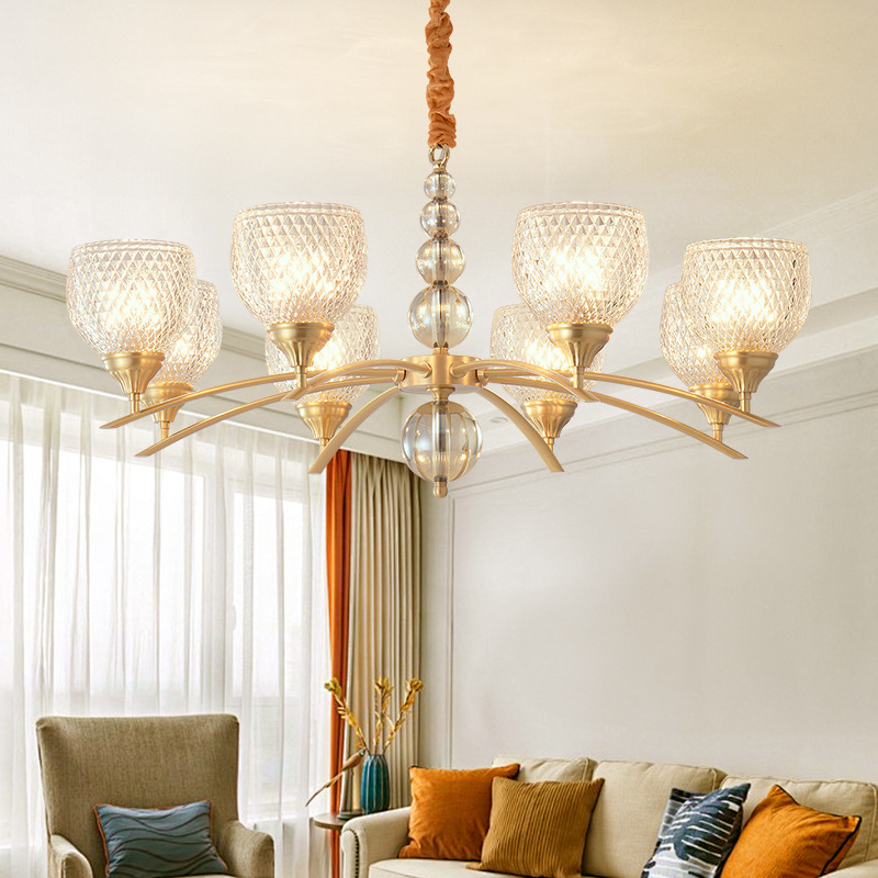 ポストモダンライト高級シャンデリアリビングルームランプシンプルで雰囲気のある全銅クリスタルランプ寝室ランプ組み合わせ家全体パッケージ