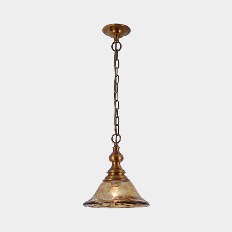アメリカンレトロな全銅製の小さなシャンデリア、パーソナライズされたシングルヘッドヴィラレストランアイランドバーガラスランプ