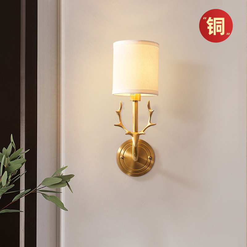 全銅アメリカンクラシックリビングルームウォールランプ鹿の頭ベッドサイド雰囲気北欧シンプルクリエイティブ通路廊下鹿の角