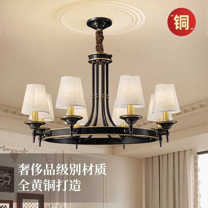 全銅アメリカン中世フレンチレトロリビングルームシャンデリア 2025 新しいハイエンドホームデコレーション寝室書斎中山ランプ