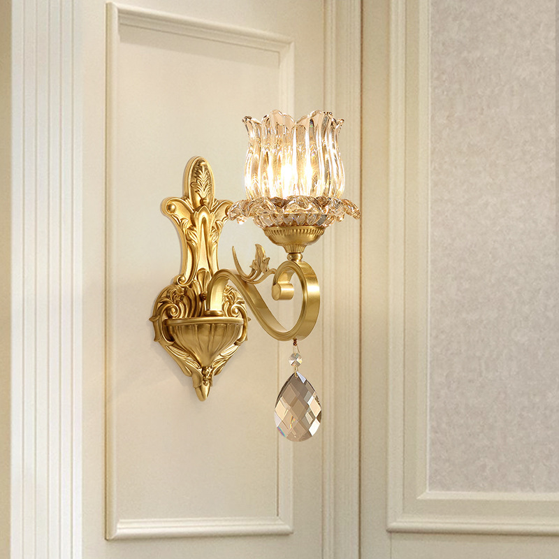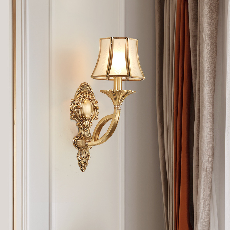 アメリカンレトロウォールランプベッドサイドランプ寝室リビングルームテレビ背景壁ヨーロッパフレンチ階段ハイエンド全銅ランプ
