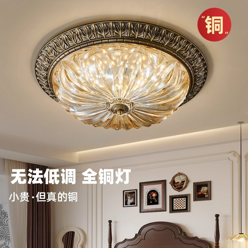 全銅アメリカンベッドルームシーリングランプハイエンドヴィラマスターベッドルームリビングルームキッチンLEDバルコニー通路雰囲気ランプ