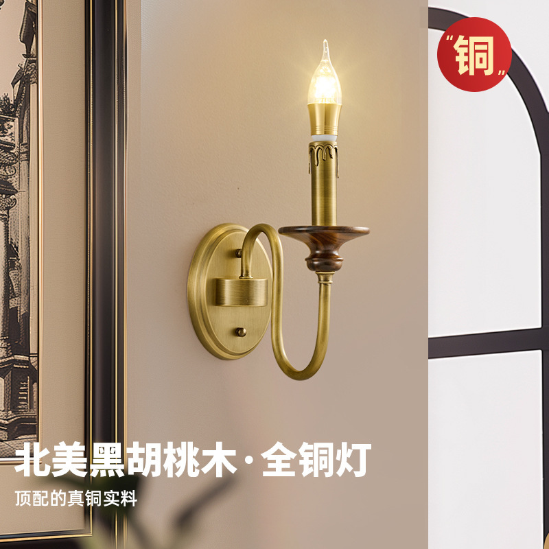 全銅フレンチミッドセンチュリーリビングルームウォールランプアメリカンレトロキャンドルランプ背景壁北米ブラックウォールナットベッドサイドランプ