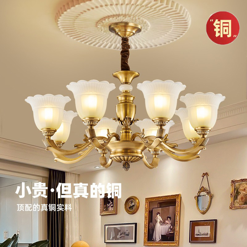 リビングルームのシャンデリア、フレンチホールのメインランプ、アメリカンレトロなベッドルームダイニングルームランプ、ヨーロピアンスタイルの雰囲気のある全銅クリームスタイルのランプ