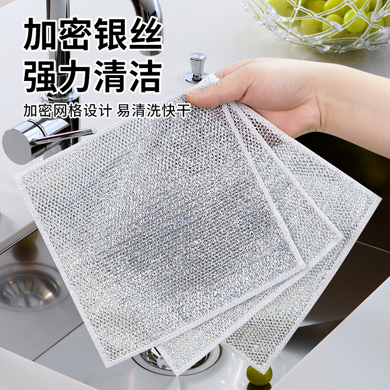 新しい銀の布は、キッチンの掃除に便利で、油がこびりつきにくい、食器用の布、家庭用たわしなどに優れています。
