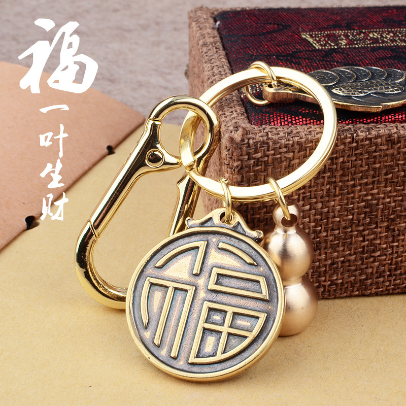 純粋な銅の黄銅の自動車のキーは福の字のバケツの創意の贈り物の復古の中国風の銅器の小さいペンダントを掛けます。