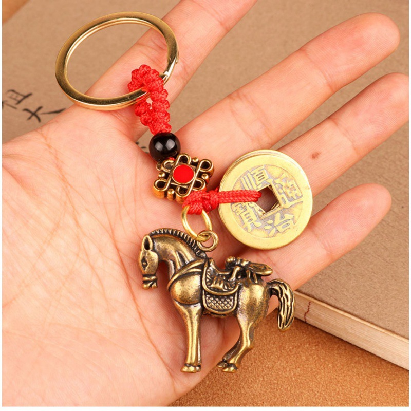 黄銅の十二生肖は五帝のお金のキーホルダーを回転します。