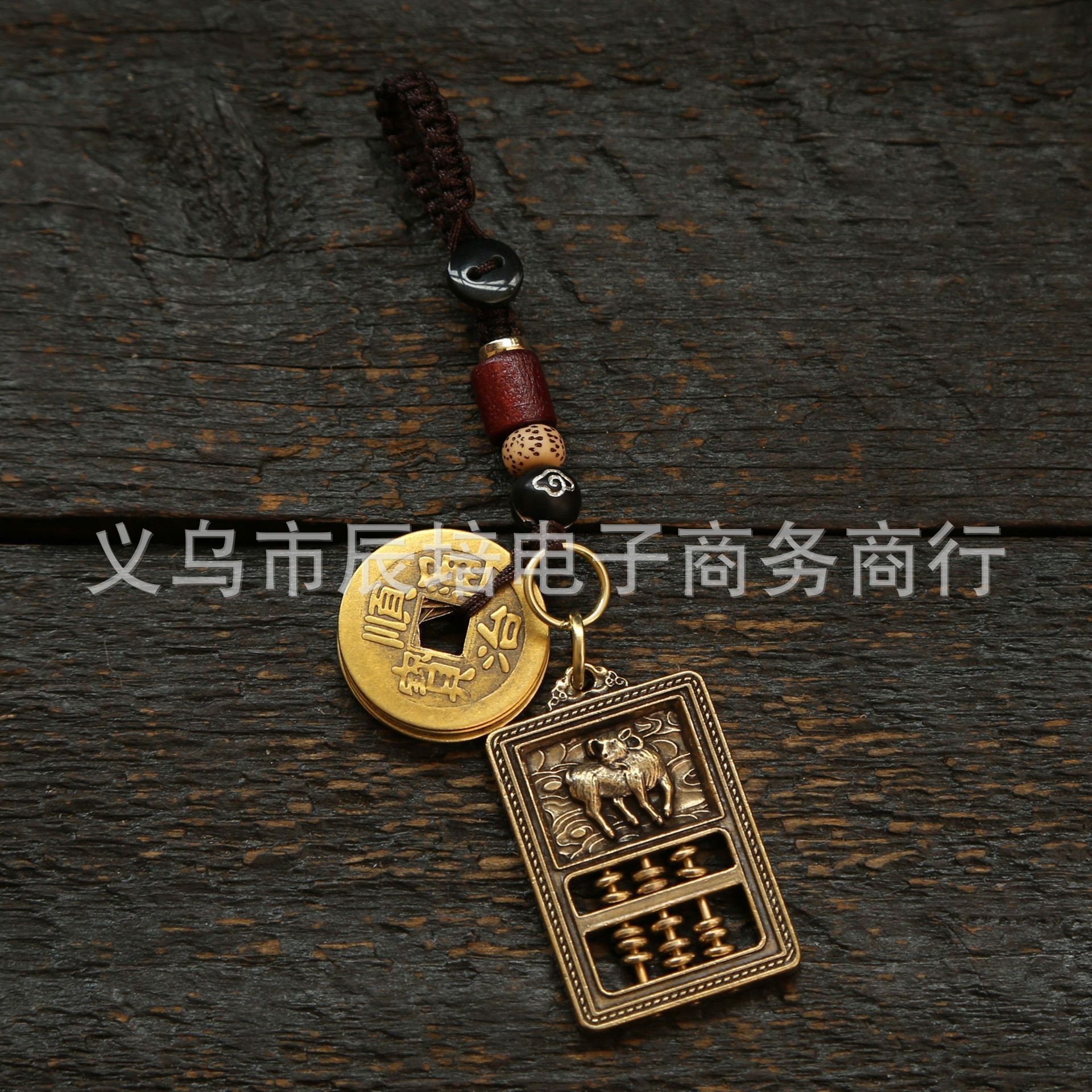 真鍮の十二生肖はそろばんのキーホルダーを動かします。