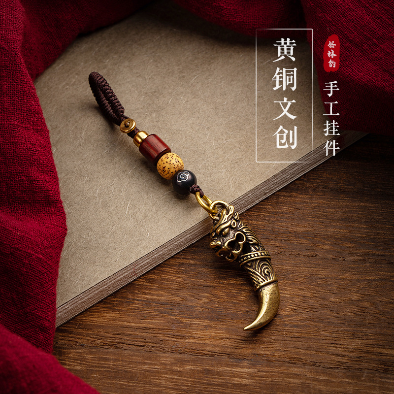 手作りの純粋な真鍮のピシュピストの狼牙のキーホルダーのペンダントの復古的な男女のペンダントのカップルの贈り物のアクセサリーの贈り物のペンダント