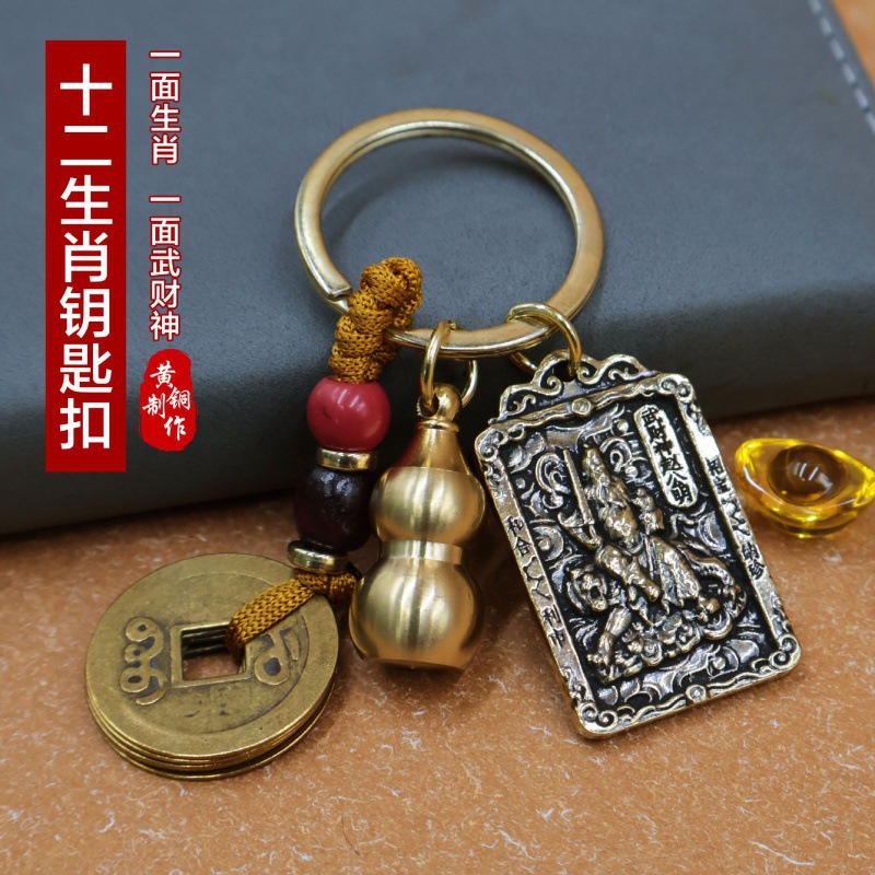 黄銅趙公明十二生肖財神令キーホルダー招財保平安男女個性鍵ペンダント