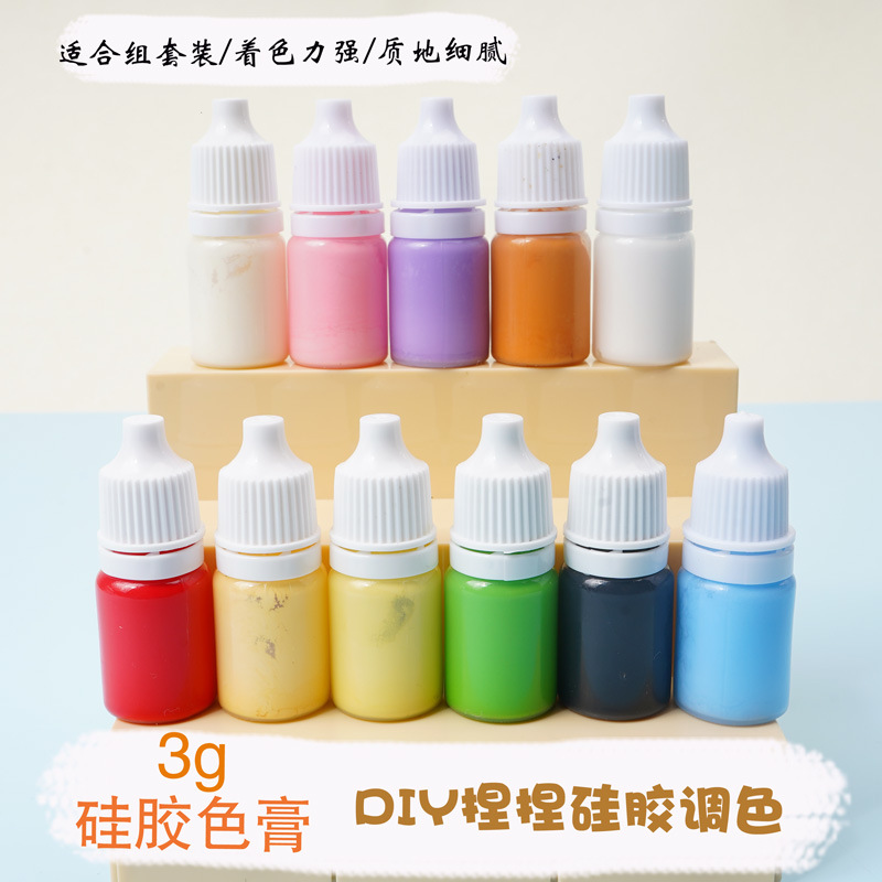 シリカゲル3グラムのクリームをつまんで、マカロンの油性クリームDIYをつまんで、高濃度で顔料を塗ります。