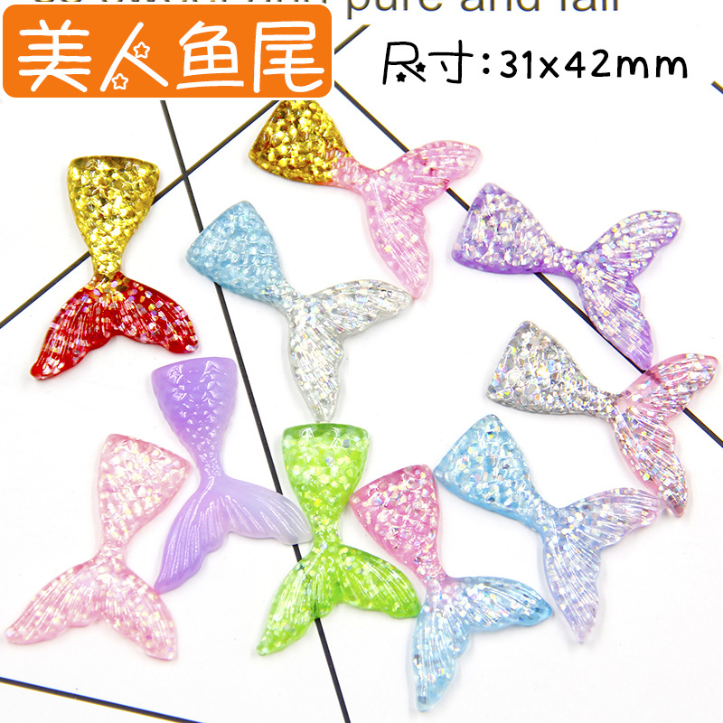 虹海洋系diy樹脂部品グラデーションフラッシュ粉マーメイド尾クリームゴムdiy滴ゴム携帯ケース