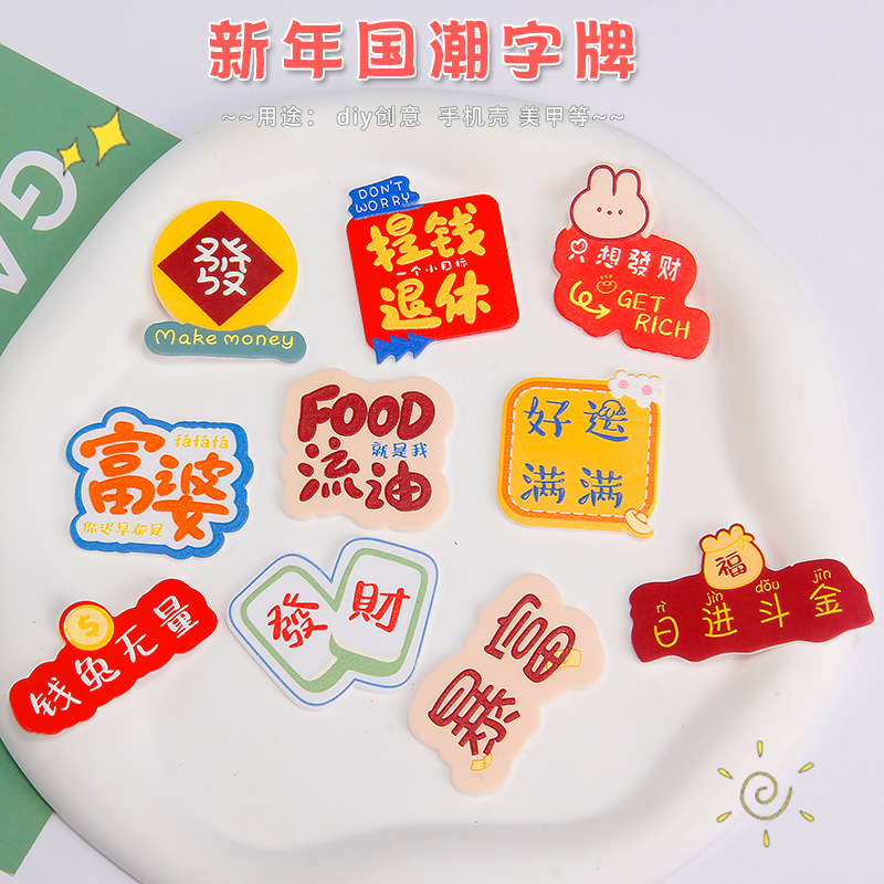 国潮アクリル新年モデル潮語字札クリームゴム部品携帯ケース手作りdiy材料髪飾り部品