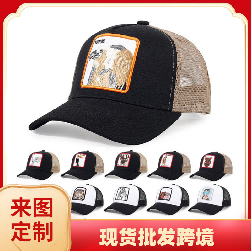 アニメ動物刺繍野球帽男性モデル欧米ネット穴通気アヒル舌帽女性レジャースポーツ日除け帽子