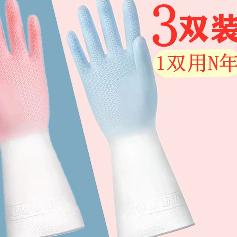3足の厚い大型ゴム手袋が台所の皿洗いに耐摩耗性のある女性ゴム牛筋労働保護清潔家事 (JF)
