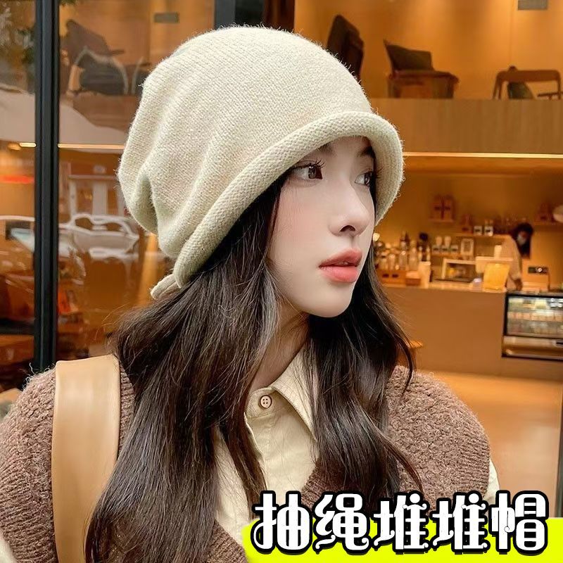 帽子の女性は秋冬に帽子を積み上げて顔を見せます。毛糸帽子は保温して防寒します。