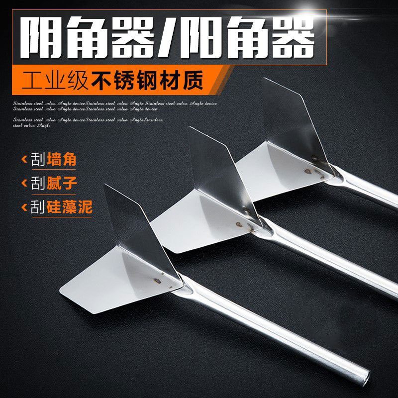陰陽角工具ステンレス陰陽角器の壁の角にパテを剃ります。